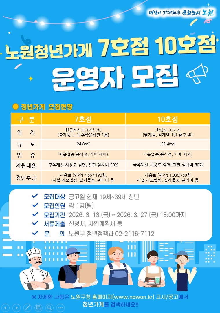 <노원 청년가게 7호점·10호점> 청년창업자 모집